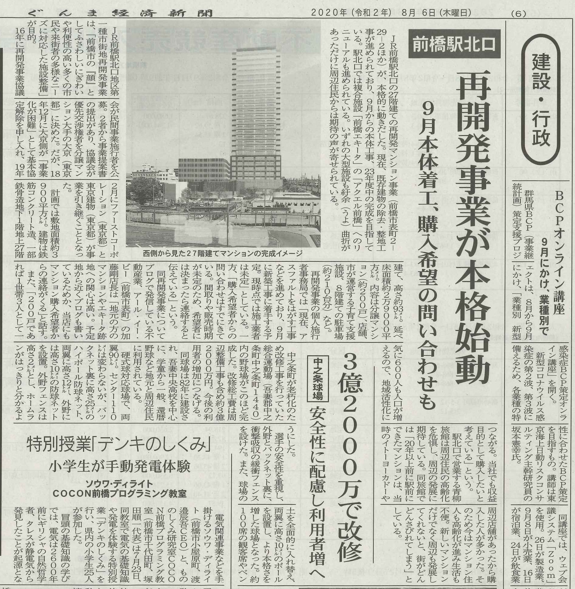 本日、▼ぐんま経済新聞 2020年(令和2年)8月6日(木曜日)▼が届きましたので確認してみると→