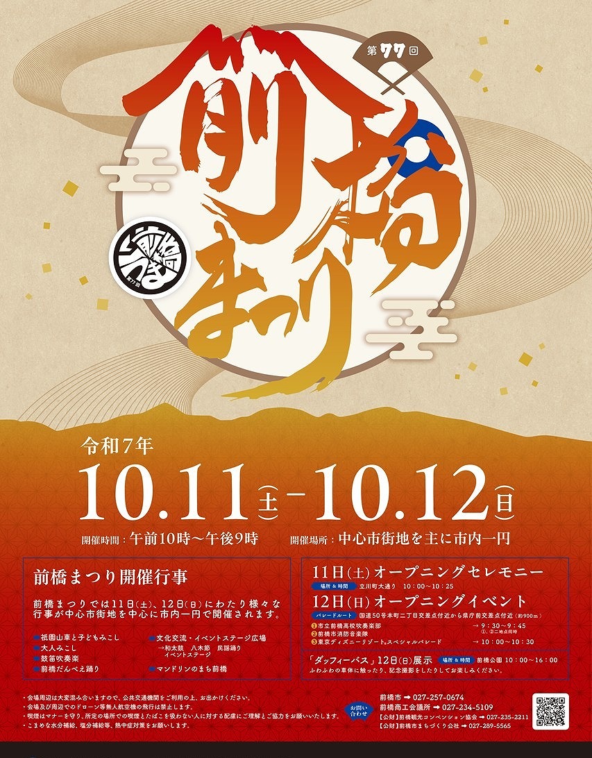 お世話になっておりますm(__)m JR前橋駅前の不動産屋さんアール・イー・ビーの店長の加藤です! 今週末の2025(令和7年)10月11日(土)・12日(日)は、前橋三大まつりの一つである 第77回 前橋まつ …