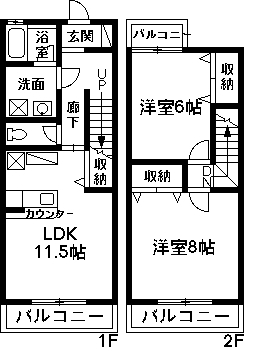 間取詳細 | (1階)LDK11.5、(2階)洋8、(2階)洋6 | 建物構造 | 木造 |