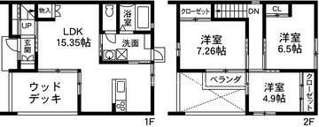 (1階)LDK15.35、(2階)洋7.26、(2階)洋6.5、(2階)洋4.9 |